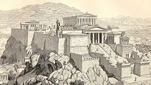 بعضی از محققین، از جمله پروفسور بارن انگلیسی عقیده دارند که پادشاه ایران قلعه آکروپولیس را ویران کرد نه معبد آکروپل را. قلعه آکروپل که دژی بود جنگی به امر خشایارشا ویران شد و بجز دیوار شهر که در اطراف آتن بود، چیزی ویران نشد. این دژ بالای تپهٔ آکروپل به نظر میرسید و آن قلعه را "پی زیس ترات" بنا نمود. آتن شهری بود بلادفاع، یعنی شهری که برای حفظ آن نجنگیده بودند و در آن زمان هم هرگز شهرهای بلادفاع را ویران نمیکردند.[4]
