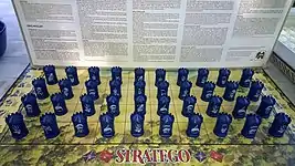 بازی فتح پرچم یک بازی تختهای و مبتنی بر راهبرد است. نام اصلی این بازی STRATEGO است. در این بازی دو نفره هر فرد ۴۰ مهره دارد که یکی از آنها پرچم است یعنی مهمترین مهرهای که نباید به دست دشمن بیفتد. براساس سلسله مراتب نظامی تعدادی مهره با درجات نظامی مختلف به علاوه ۶ بمب جزو مهرههای بازی هستند. چند مهره تخریبچی هم وجود دارد که فقط آنها میتوانند بمبها را خنثی کنند. برچسب مهرهها در یک سمت آنها است بهطوریکه طرف مقابل تمام مهرهها را به یک شکل میبیند. پس از برخورد دو مهره به یکدیگر، مهرهها نمایش داده میشوند و مهره با درجه پایینتر از بازی خارج میشود. مهرههای یک نفر آبی و دیگری قرمز است. مهرهها میتوانند در جهتهای بالا و پایین و چپ و راست در صورتی که مانعی وجود نداشته باشد حرکت کنند. هر کس بتواند پرچم طرف مقابل را پیدا کند یا تمامی مهرههای قابل حرکت حریف را از بازی خارج کند، برنده میشود.