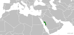 محمد، پیامبر اسلام با هجرت از مکه به مدینه پایههای سیاسی اسلام را پایه گذاشت، و برای دفاع از آن در مقابل دشمنان خود بهخصوص مخالفان مکی ایستادگی کرد. همچنین چندین جنگ (جنگ موته و تبوک) را برای تحکیم و حفظ ثغور اسلامی با رومیان در شام داشت؛ و بدنبال صلح حدیبیه با مکیان در نهایت موفق به فتح مکه شد. از آن پس به امپراتوریهای اطراف خود نامه فرستاد و آنها را به اسلام دعوت کرد. پس از درگذشت محمد، خلیفه اول برای دفع مدعیان پیامبری و برگشتگان از اسلام جنگهای رده ترتیب داد. در زمان وی مسلمانان به سوی نبرد با رومیان و فتح شام نیز شتافتند و کنعان به دست مسلمانان درآمد. ادامه کار در زمان خلیفه دوم، عمر بن خطاب منجر به فتح دمشق و یرموک شد و هرقل شام را رها کرد و به قسطنطنیه گریخت و شام به تدریج دردست مسلمانان افتاد و تا کوههای توروس در آسیای صغیر پیش رفتند. اورشلیم که در آن زمان «ایلیاء» نام داشت به هنگام سفر عمر به شام از سوی اسقف اعظم تسلیم شد. از آن پس عمر به گسترش فتوحات در مصر و شمال آفریقا شتافت. در دوره پیامبر اسلام، محمد نیمه غربی شبه جزیره العرب در دست مسلمانان بود. در عهد ابوبکر تمام شبه جزیره