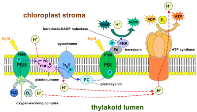 - زنجیره واکنش بین فتوسیستم (II) و فتوسیستم (I) و از طریق کمپلکس سیتوکروم، ATP تولید میکند.