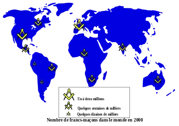 حجم عضویت فراماسونری، به همان صورت که در شکلهای متفاوت در سطح جهان وجود دارد، توسط لژ بزرگ متحد انگلستان(UGLE) حدود شش میلیون در سطح جهان تخمین زده شدهاست.[15] لژهای بزرگ (یا گاهی اورینتهای بزرگ) غیر وابسته هر یک قلمرو ماسونی خودشان را کنترل میکنند، که شامل لژهای تابع (یا جزء) میباشد. بزرگترین قلمرو تکی (بر حسب عضویت)، لژ بزرگ متحد انگلستان است (با حدود یک چهارم میلیون عضو). لژ بزرگ اسکاتلند و لژ بزرگ ایرلند (en) (روی هم رفته) حدود ۱۵۰ هزار عضو دارند.[15] مجموع اعضاء لژهای مختلف در ایالات متحده تنها اندکی کمتر از دو میلیون نفر است.[30]