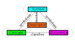 - هستی شناسی: بیان چیزی معنی دار در یک محدوده مشخص شده جهان یا دامنه گفتمان با استفاده از یک دستور برای استفاده از واژگان است. دستور زبان مشخص می کند آنچه در آن به معنی به خوبی شکل گرفته است, بیانیه, تاکید, پرس و جو, و غیره. (رسمی و محدودیت های مورد نظر در این آنتولوژی را کنترل واژگان را می توان با هم استفاده می شود.[4]