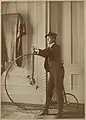 عکس شخصی از جانستون، با لباس شخصی، با سبیل تقلبی و در دست داشتن دوچرخه