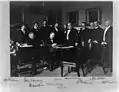 "امضای پروتکل"، به معنی توقف جنگ بین ایالات متحده و اسپانیا در جنگ اسپانیا و آمریکا