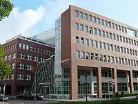 تصویری از ساختمان بخش تحریریه روزنامه فرانکفورتر آلگماینه در فرانکفورت.