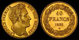 ![]() سکهٔ ۴۰فرانکی بلژیک (۱۸۳۵) | |