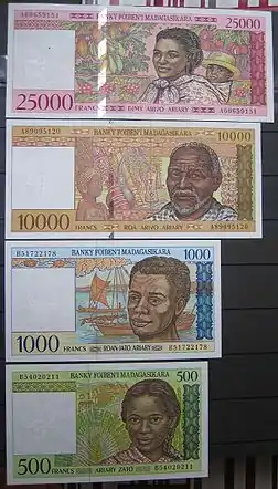 ![]() آخرین اسکناسهای فرانک مالاگاسی | |