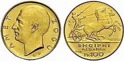 ![]() سکه ۱۰۰ فرانگا با تصویر زوگ اول آلبانی. | |