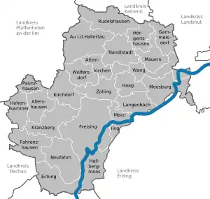 - مشارکتکنندگان ویکیپدیا. «Freising (district)». در دانشنامهٔ ویکیپدیای انگلیسی، بازبینیشده در ۳۱ ژوئیه ۲۰۱۸.