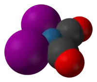 مدل فضاپرکن [Ir(CO)2I2]− کاتالیزوری که در فرایند کاتیوا مورد استفاده قرار می گیرد.