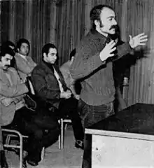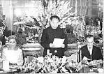 هشتمین جشن هنر شیراز. فرح پهلوی در حال صحبت با فرزانه تأییدی، علی نصیریان، عزتالله انتظامی و مهین شهابی