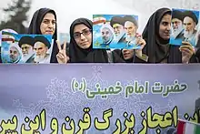 چند دختر جوان در راهپیمایی 22 بهمن در قم