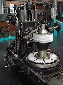 دستگاهی که تقسیمات از جمله کشیدن خط یا ایجاد شکاف و غیره توسط آن انجام شود دستگاه تقسیم میگویند که از اجزای زیر تشکیل شدهاست: