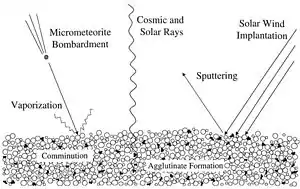 Wikipedia contributors, "Space weathering," Wikipedia, The Free Encyclopedia, (accessed February 23, 2010).