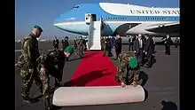 پهن کردن فرش قرمز، روبهروی پلکان هواپیمای یکم نیروی هوایی
