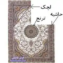 فرشهای سنتی ایران عموماً دارای گلی در وسط به نام ترنج هستند که یادآور حوضهای خانههای قدیمی میباشند. چهار مثلث در چهار گوشهٔ فرش لچکها را تشکیل میدهند. قاب دور فرش به نام حاشیه خوانده میشود. ترنج به شکل دایره (مانند تصویر روبرو) یا بیضی و برخی اوقات دوکی شکل میباشد. طرح لچکها معمولاً برگرفته از ترنج همراه با اضافاتی است.