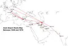نخستین مسیرهای پروازی و اولین شرکت هواپیمایی در فرودگاه اراک