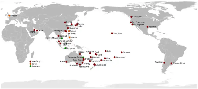 International destinations served from Auckland Airport.