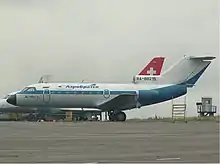 AeroBratsk Yakovlev Yak-40 parked at Bratsk Airport.