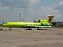 اس۷ ایرلاینز توپولف-۱۵۴ in new livery parked at Irkutsk Airport.