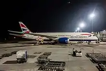 بریتیش ایرویز provides RGIA's sole nonstop link to Europe, flying to هیترو لندن with the بوئینگ ۷۸۷ دریملاینر