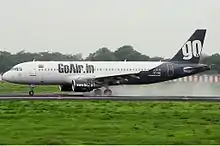 An arriving GoAir خانواده ایرباس ای۳۲۰