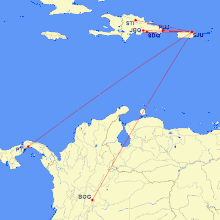 Caribbean, South and Central American destinations from SJU.