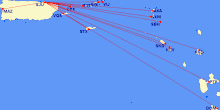 | آیلند بردز | فصلی: کلیتن جی. لوید، ملویل هال، ونس و. آموری، پرینسس جولیانا، ترانس بی. لتسام، ویرجین گوردا، و. س. برد، سنت لوسیا، فرودگاهای. تی. جاشوا، ماریس بیشاپ، پیارکو، جمهوری دومینیکن، جزایر تورکس و کایکوس، کویین بیاتریکس، هاتو، گرانتلی ادمز، کنفیلد |