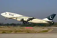 PIA Boeing 747-300 taking off from the newly renovated runway.