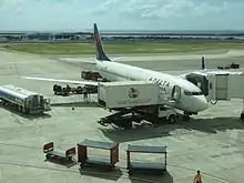 A Delta 737-800 bound for Atlanta parked at gate 4