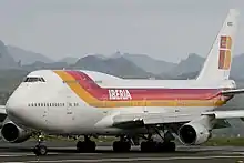 ایبریا ایرلاین بوئینگ ۷۴۷–۴۰۰ at the airport.