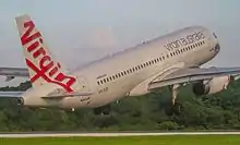 A ویرجین استرالیا رجیونال ایرلاینز خانواده ایرباس ای۳۲۰ takes off at Christmas Island Airport (2016)