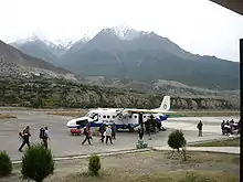 A Nepal Airlines plane at Jomsom airport.