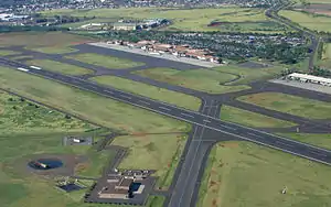 | Hawaiian Airlines | بین الملی هونولولو، کاهولوی، کونا، لسآنجلس فصلی: اوکلند (Daily service resumes ۱۱ آوریل ۲۰۱۸) [3] |