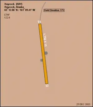 فرودگاه هیکاک (به انگلیسی: Haycock Airport) یک فرودگاه همگانی بهرهبرداری هوایی با کد یاتا HAY است که یک باند فرود شن و خاک دارد و طول باند آن ۵۳۳ متر است. این فرودگاه در کشور ایالات متحده آمریکا قرار دارد و در ارتفاع ۵۳ متری از سطح دریا واقع شدهاست.