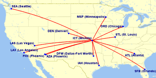 Cities served nonstop from Wichita (as of April 2017)
