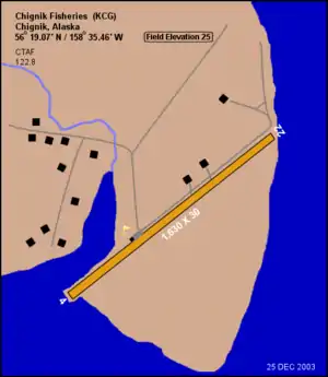 فرودگاه چایگنیک فیشری (به انگلیسی: Chignik Fisheries Airport) یک فرودگاه همگانی با کد یاتا KCG است که یک باند فرود شن دارد و طول باند آن ۴۹۷ متر است. این فرودگاه در شهر چیگنیک، آلاسکا کشور ایالات متحده آمریکا قرار دارد و در ارتفاع ۸ متری از سطح دریا واقع شدهاست.