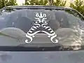تصویر دو بعدی اِلِمان تندیس «الله» گرجی روی یک خودرو
