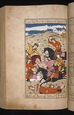 | همی ریخت آهن ز بالای برز | زمانی به خنجر زمانی به گرز | |