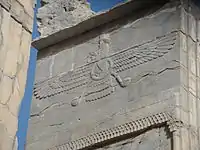 نماد فر کیانی کندهکاری شده در تختجمشید فارس.