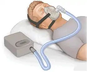 ![]() سیپیایپیدرمانی یا سیپیایپیتراپی: ژنراتور جریان، لوله پلاستیکی، ماسک تمام صورت |