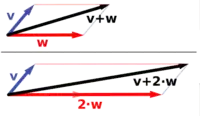 | بسته بودن نسبت به جمع برداری | به هر جفت عنصر و در عنصری منحصر به فرد در مربوط است به نام مجموع و که با نشان داده میشود. |