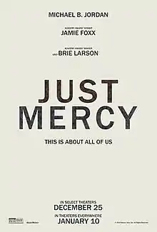 فیلم Just Mercy یک درامای قانونی-قضایی است که با اقتباس از کتاب Just Mercy: A Story of Justice and Redemption، نوشتهٔ برایان استیونسون، ساخته شدهاست؛ برایان استیونسون، وکیل و فعال اجتماعی و سیاسی آفریقایی-آمریکایی، در این کتاب نگاهی به خاطرات دوران فعالیت حرفهای خود و بی عدالتیهای سیستم قضایی آمریکا میاندازد. دستین دنیل کرتون، کارگردان کمکار Just Mercy، با به تصویر کشیدن بخشی از تکان دهندهترین تجربیات استیونسون بهعنوان نمونه، سعی دارد ضمن تقدیر از تلاشهای بی مشائبهٔ این وکیل بزرگ، که لقبی همچون ماندلای آمریکا را به دوش میکشد، توجهات را به سوی نبرد بزرگ اقلیتها در ایالات متحده با نابرابری اجتماعی ببرد و تصویری واقع گرایانه و متفاوت را از حال و هوای بند اعدام زندانها به نمایش بگذارد.