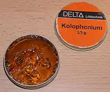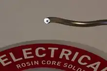 سیم لحیم با هستهٔ روزین که به شکل نقطهٔ سیاه در مرکز برش سیم مشخص است.