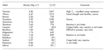 همچنین مقاومت به خوردگی بالای تیتانیوم، آن را تبدیل به مادهای جذاب برای صنایع شیمیایی، فرآوری مواد غذایی و مهندسی پزشکی کردهاست. آلیاژهای منیزیم به دلیل داشتن نسبت استحکام به وزن بالا جایگزین مناسبی برای فولاد و آلومینیوم در قطعات مختلف میباشند. هرچند که شکلپذیری منیزیم در دمای پایین کم است و این مسئله باعث محدودیت کاربرد آن نسبت به آلومینیوم شدهاست. برلیم به دلیل سفتی و مدول الاستیک بالا در ژیروسکوپ و سیستمهای هدایت داخلی استفاده میشود. برلیوم همچنین برای شیلدهای حرارتی و اجزای سازهای موشکها و همچنین پنجرههای لولههای اشعه ایکس کاربرد دارد. لیتیوم به عنوان ماده آلیاژی در آلومینیوم به منظور کاهش دادن چگالی آن و کاهش وزن در سازههای هوایی استفاده میشود. ییتریوم مجموعهای از خواص عالی و قابل توجه دارد که با وجود کمیاب بودن، در هواپیما و فضاپیماهای با سوخت هستهای کاربرد داشتهاست. دیگر فلزات سبک اغلب برای استفاده سازهای چندان مناسب نیستند زیرا فعالیت شیمیایی بالایی دارند یا اینکه نقطه ذوب آنها پایین است. با این وجود کاربردهای غیرسازهای برای فلزات سبک نیز زیاد است. به عنوان مثال سدیم مایع در مقادیر زیاد برای خنک کاری رآکتورهای هسته ای و در مقادیر کم برای خنک کاری شیرهای موتورهای IC عملکرد بالا استفاده میشود. دلیل استفاده از سدیم مایع به عنوان خنک کار این است که هدایت حرارتی آن ۱۴۳ برابر بهتر از آب است و چگالی آن نیز از آب کمتر است. دمای جوش آن نیز بالاتر بوده(۸۸۳ درجه سلسیوس) و تا زمانی که در سیستم بسته استفاده شود ایمن است. فعالیت شیمیایی کلسیم، سزیم و لیتیوم باعث میشود از آنها برای جذب و حذف گازهای باقیمانده در سیستمهای خلأ استفاده کنند.[2][3]