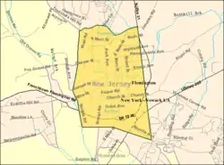 ![]() Location of Flemington within Hunterdon County. Inset: Location of Hunterdon County highlighted in the State of New Jersey. | |