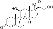 | 9-fluoro-11,17-dihydroxy-17- (2-hydroxyacetyl)- 10,13-dimethyl- 1,2,6,7,8,9,10,11,12, 13,14,15,16,17- tetradecahydrocyclopenta[a]phenanthren-3-one | |