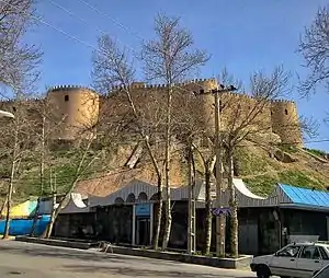 این قلعه از بناهای خیلی قدیم است ولی در هر عصر و زمانی تغییری در او پیدا شده و تصرفاتی در او شده، قلعه مزبور در روی تپهای که طبیعی است ساخته شده و تپه مزبور مخلوط به سنگ و خاک است و تقریباً سی ذرع ارتفاع دارد. بنایی که ساخته شده یک طرف او هم به بیرون بنا راه ندارد زیرا که سنگ است؛ ولی سه طرف دیگر به بیرون بنا چون خاک است راه دارد. برجهای بلند خیلی محکم داشته از جمله برجی که از تمام بروجات ارتفاع او زیادتر است مشهور به فلکالافلاک است. روی آن برج اتاقی بوده که سه در داشته و منظره با صفایی بوده. رودخانه و باغات در پایین برج مزبور واقع، بلوک شهر از طرف شمال و جنوب پیدا، سایر بروجات هم اتاقهای متعدد در روی آنها ساخته بوده، اندرونی و بیرونی و حمام و طویله و محبوسخانه در میان محوطه قلعه مهیا بوده.[11]
