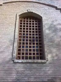 ابعاد این حیاط که جهت شمالی، جنوبی طراحی شده ۲۲/۵×۳۱ متر است. پیرامون آن از چهار برج تشکیل شده که دو برج آن در شمال و شمال غربی و دو برج دیگر در جنوب و جنوب غربی قرار دارد.