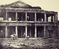 بقایای اسکلتی شورشیان در پیشزمینه ویرانههای کاخ باغ اسکندر نشان میدهد، لکهنو، هند، ۱۸۵۸